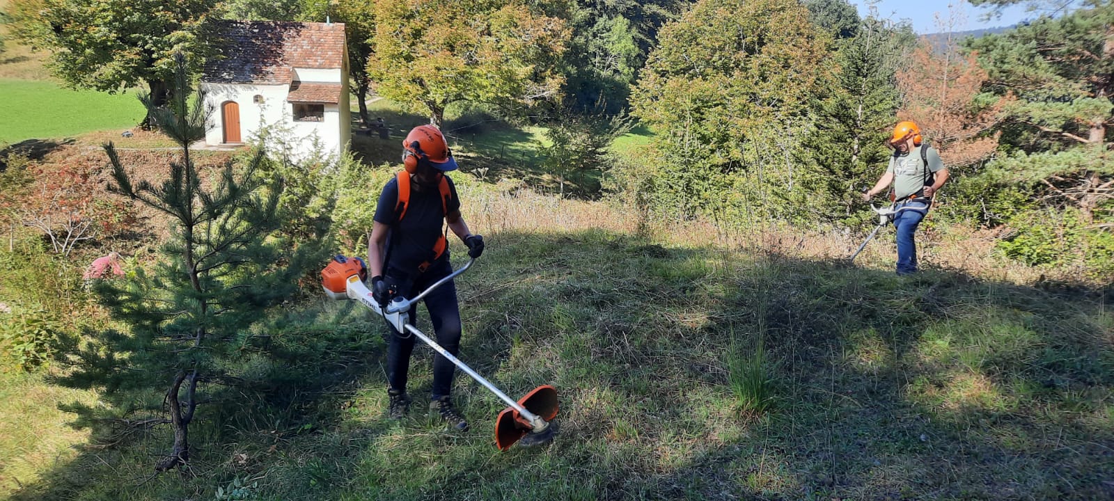 Bei der Pflegeaktion 2024 konnten die Flächen um die Reiterles Kapelle ausgiebig bearbeitet werden. Dadurch präsentiert sich das Waldstetter Wahrzeichen rechtzeitig zur Wandersaison gepflegt und fotogen.