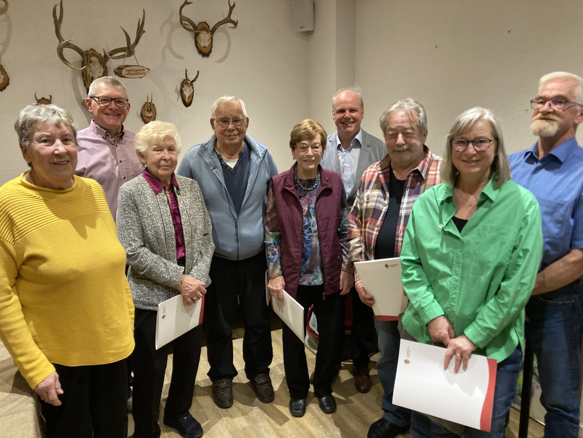 Als Höhepunkt konnten sehr langjährige und verdiente Mitglieder der Ortsgruppe für insgesamt 450 Jahre Mitgliedschaft geehrt werden.